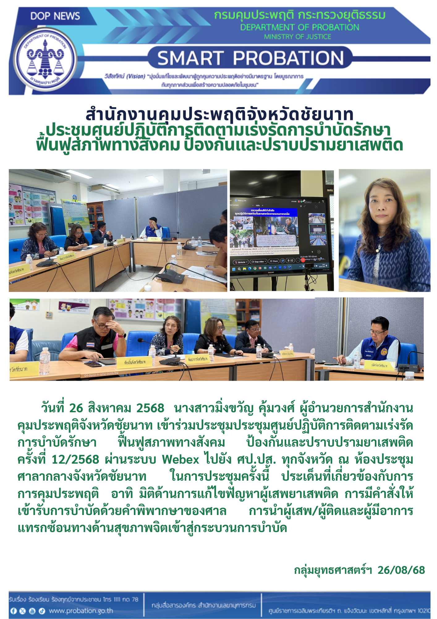 สำนักงานคุมประพฤติจังหวัดชัยนาทร่วมประชุมศูนย์ปฏิบัติการติดตามเร่งรัดการบำบัดรักษาฟื้นฟูสภาพทางสังคม ป้องกันและปราบปรามยาเสพติด