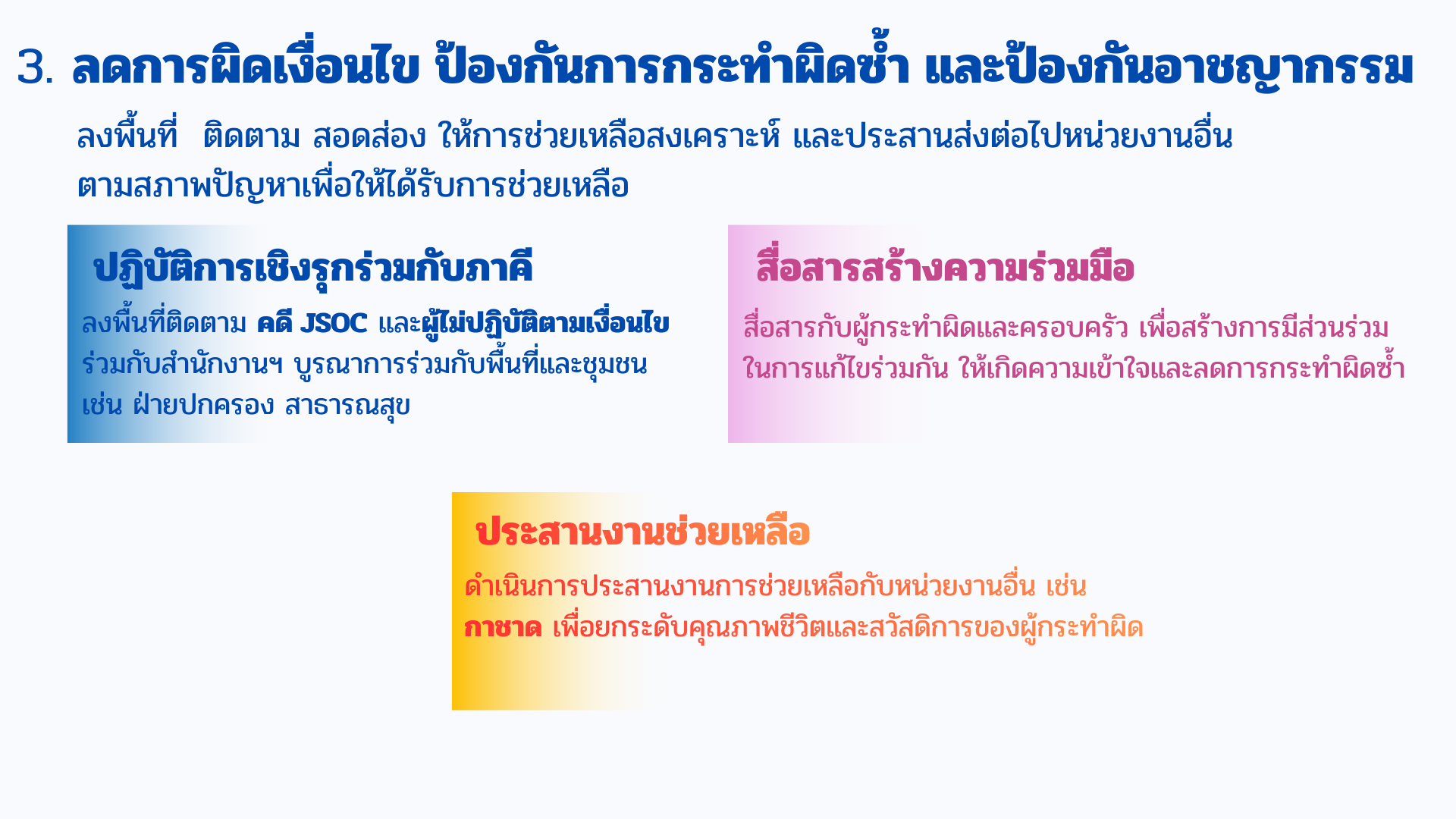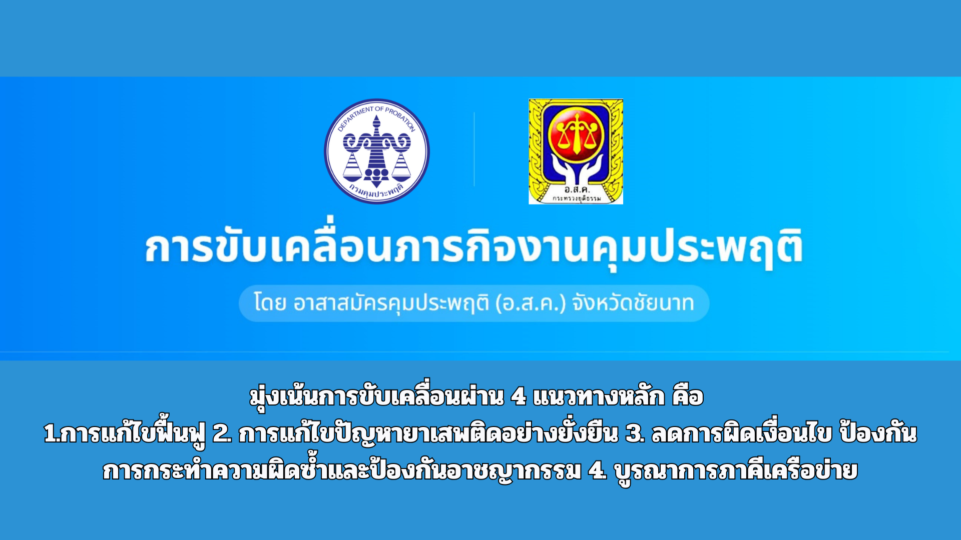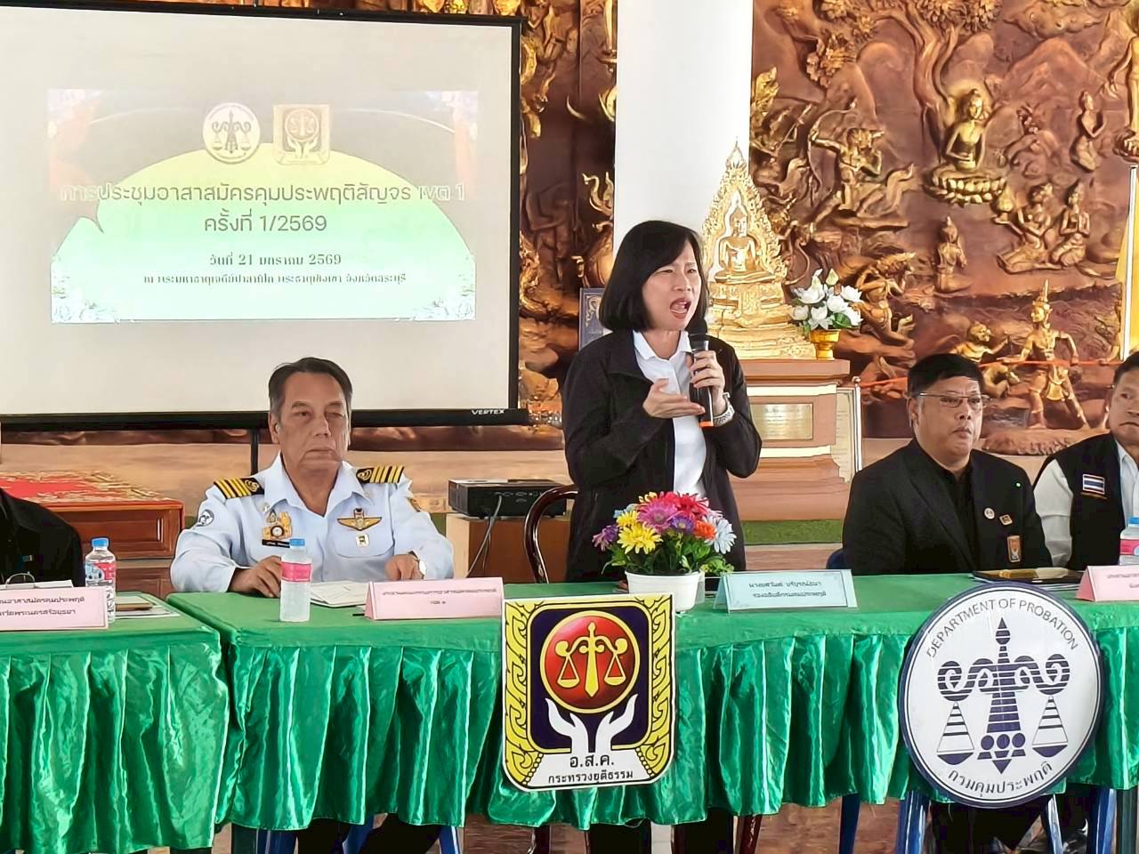 วันที่ 21 มกราคม 2569 นางสาวมิ่งขวัญ คุ้มวงศ์ ผู้อำนวยการฯ พร้อมด้วย กลุ่มยุทธศาสตร์ฯ และ นายธานี เปรมะวัต ประธานคณะกรรมการ อ.ส.ค. ชัยนาท และทีมอาสาสมัครคุมประพฤติจังหวัดชัยนาท เข้าร่วมประชุมอาสาสมัครคุมประพฤติ ภาค 1 สัญจร ครั้งที่ 1/2569 ณ พระมหาธาตุเจดีย์ปาสาทิโก พระธาตุเชิงเขา อ.เมืองสระบุรี จังหวัดสระบุรี โดยมี นางยศวันต์ บริบูรณ์ธนา รองอธิบดี กรมคุมประพฤติ เป็นประธานเปิดการประชุม และสร้างความเข้าใจในทิศทาง การดำเนินงาน และเสริมสร้างขวัญกำลังใจให้แก่อาสาสมัครคุมประพฤติในพื้นที่ภาค 1 โดยประธานอาสาสมัครคุมประพฤติจังหวัดชัยนาท ได้นำเสนอข้อมูลการดำเนินงานของ อ.ส.ค.ชัยนาท ต่อที่ประชุม ประกอบด้วย 1. การแก้ไขฟื้นฟู 2. การแก้ไขปัญหา ยาเสพติดอย่างยั่งยืน 3. ลดการผิดเงื่อนไข ป้องกันการกระทำผิดซ้ำและป้องกันอาชญากรรม และ 4.การบูรณาการภาคีเครือข่าย เพื่อเป็นการแลกเปลี่ยนเรียนรู้ และสร้างแนวทางการพัฒนา อ.ส.ค.ให้มีความเข็มแข็งต่อไป