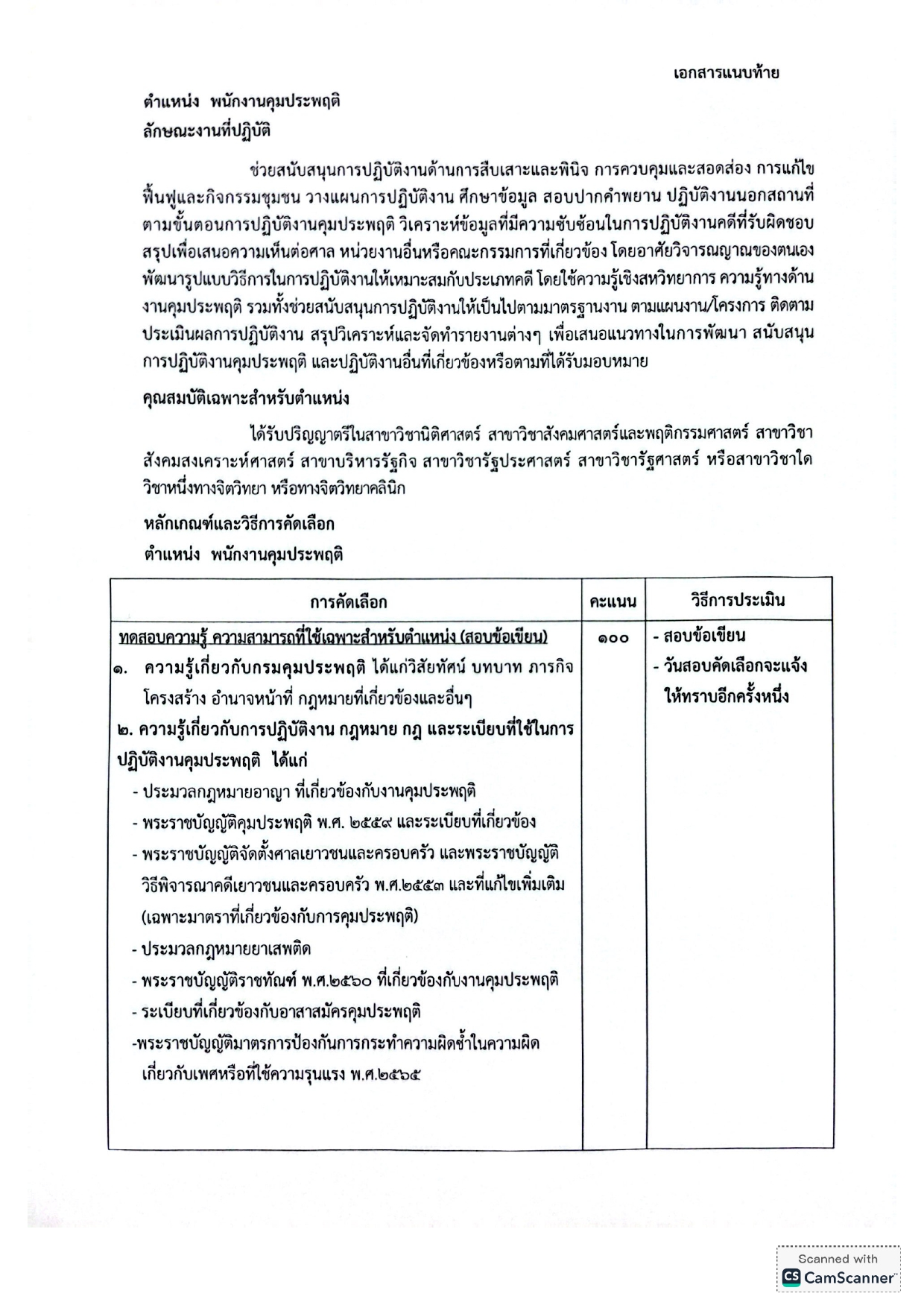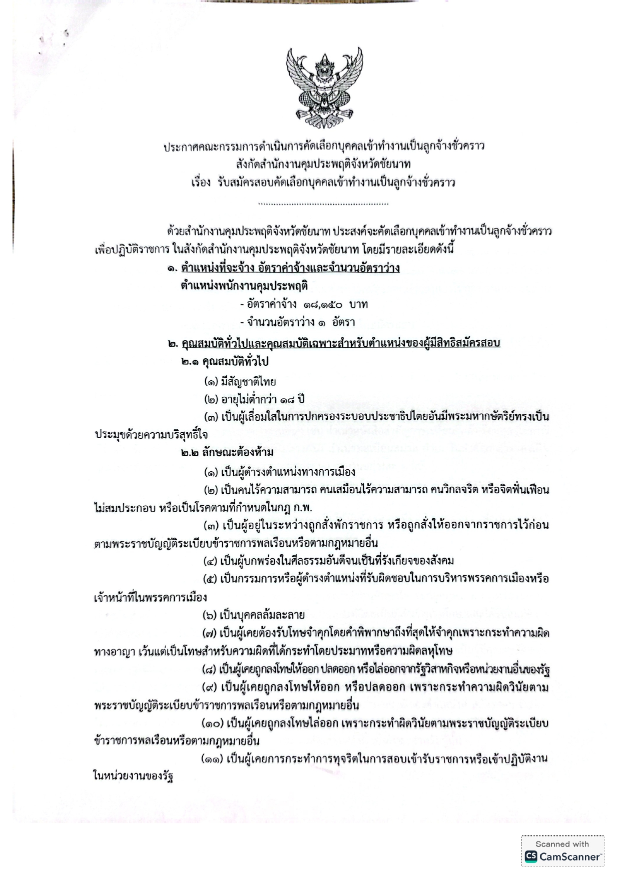 เรื่อง รับสมัครสอบคัดเลือกบุคคลเข้าทำงานเป็นลูกจ้างชั่วคราว ตำแหน่ง พนักงานคุมประพฤติ จำนวนอัตราว่าง 1 อัตรา อัตราค่าจ้าง 18,150 บาท