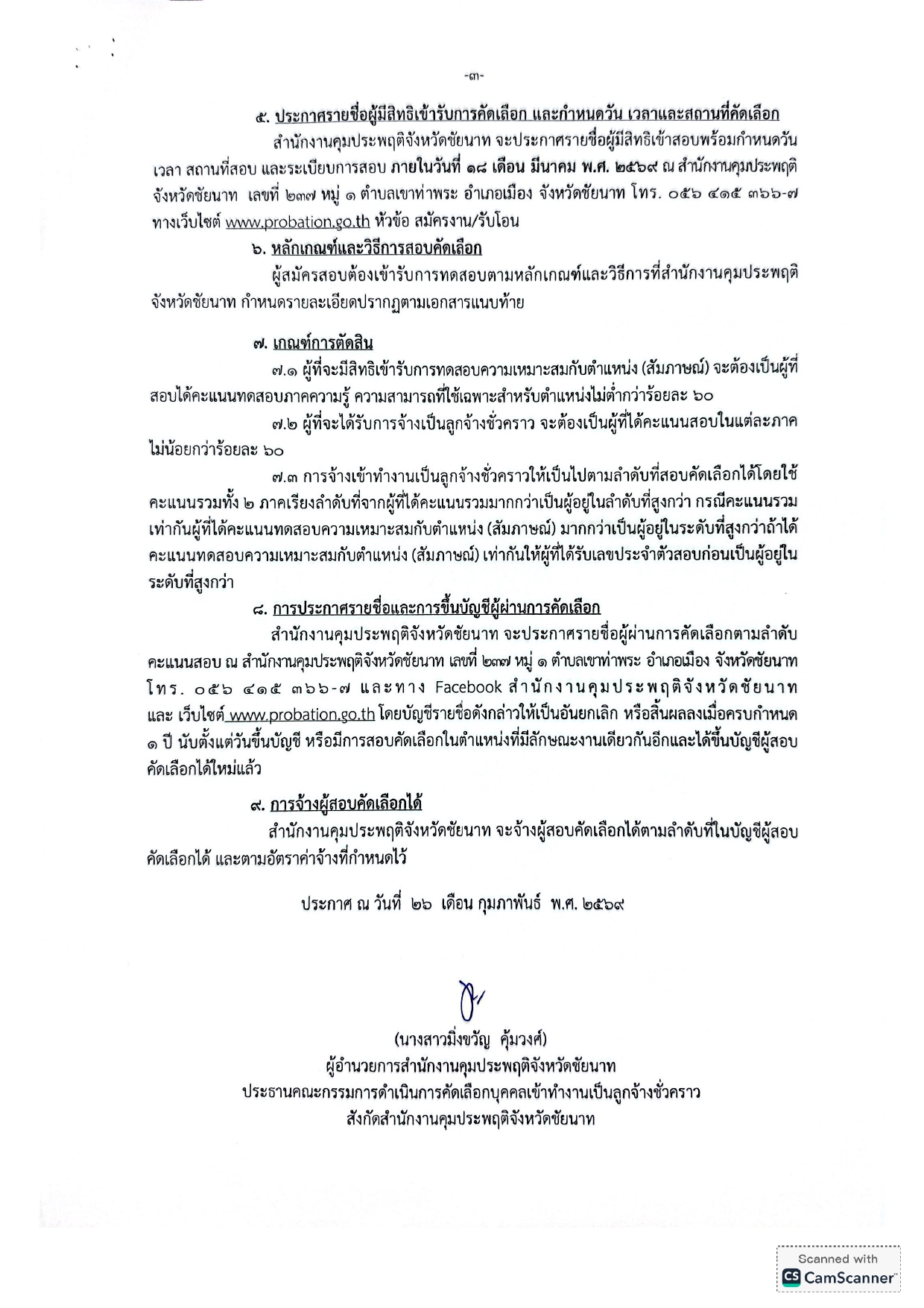 ประกาศ สำนักงานสำนักงานคุมประพฤติจังหวัดชัยนาท เรื่อง รับสมัครสอบคัดเลือกบุคคลเข้าทำงานเป็นลูกจ้างชั่วคราว ตำแหน่ง พนักงานคุมประพฤติ