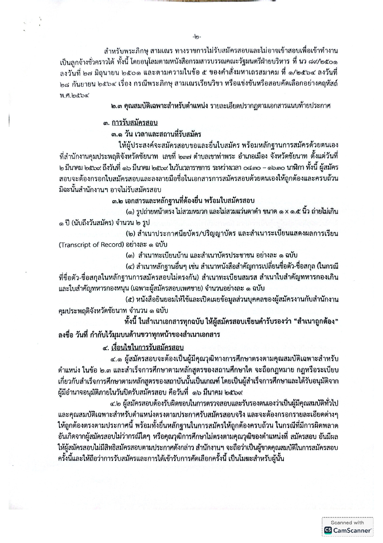 รับสมัครตั้งแต่วันที่ 2 มีนาคม 2569 - 16 มีนาคม 2569 (เว้นวันหยุดราชการ) สนใจประสงค์สมัครสอบ ติดต่อขอรับใบสมัครและยื่นใบสมัครสอบด้วยตนเอง ณ สำนักงานคุมประพฤติจังหวัดชัยนาท